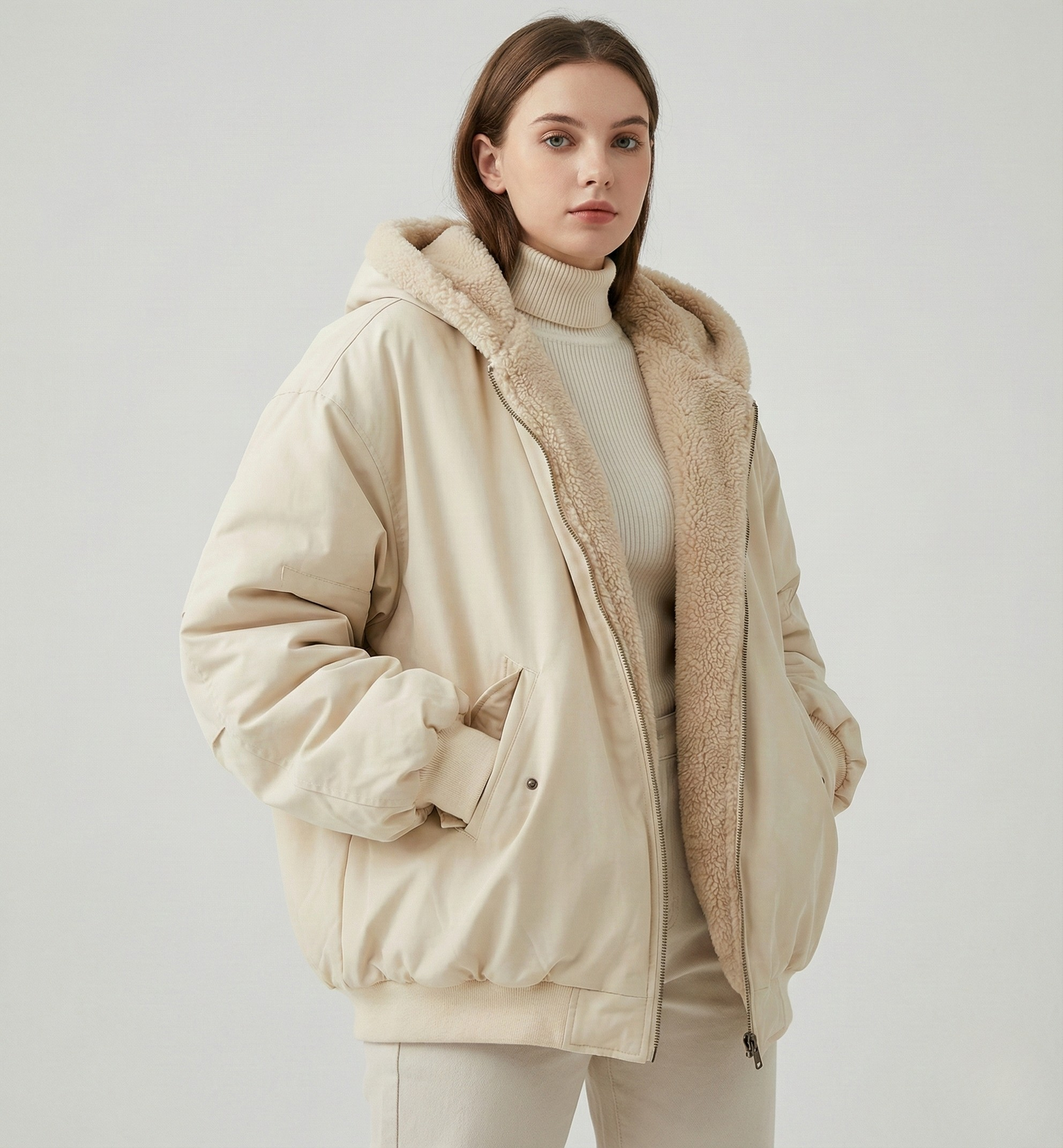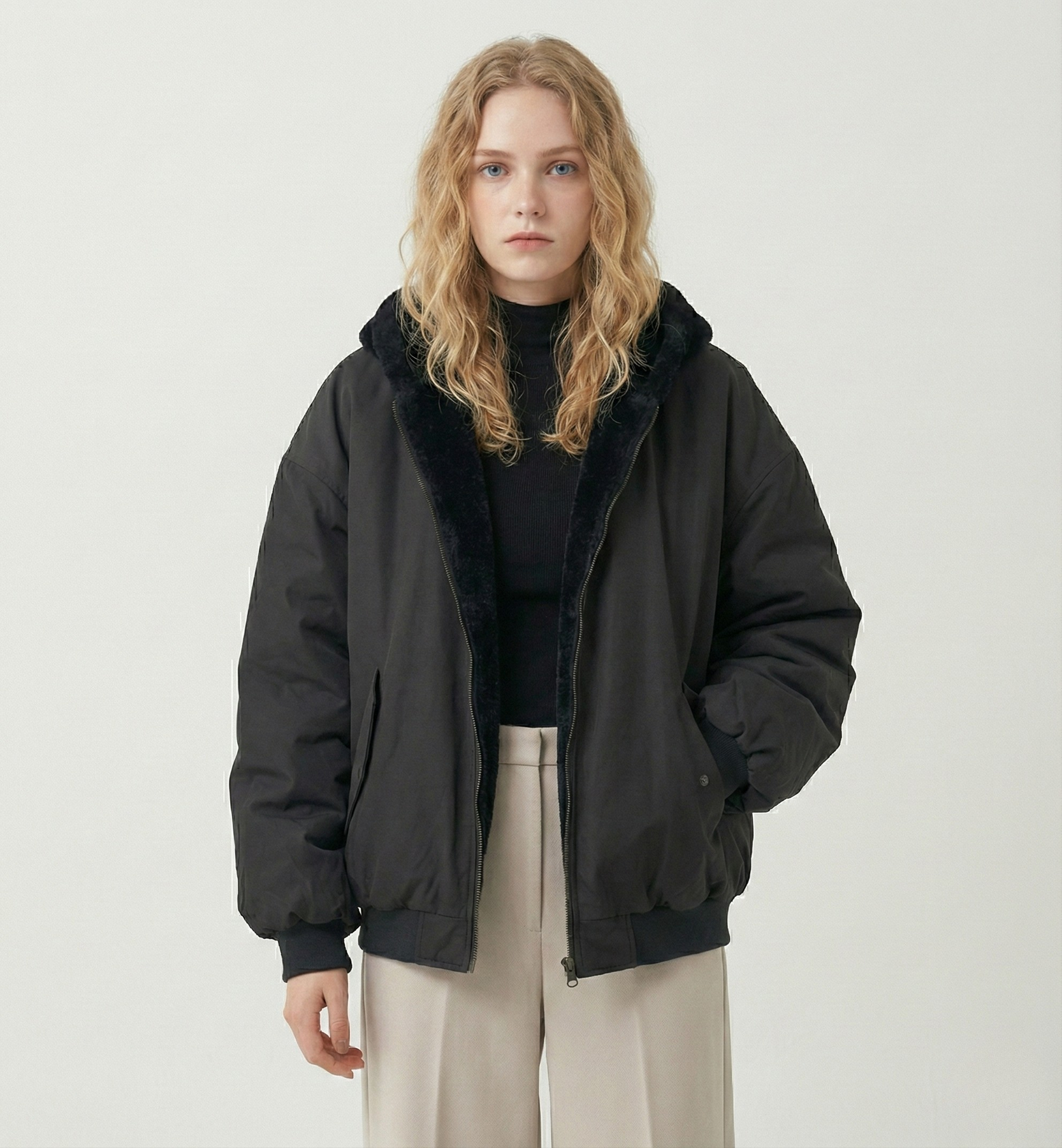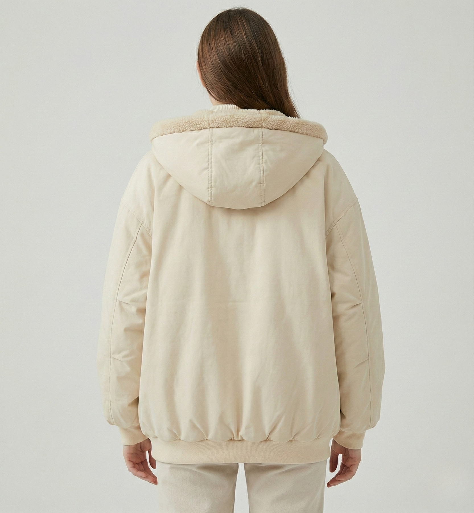 • Hem & Finish: Ribbed hem for warmth and a structured, solid-colored exterior.