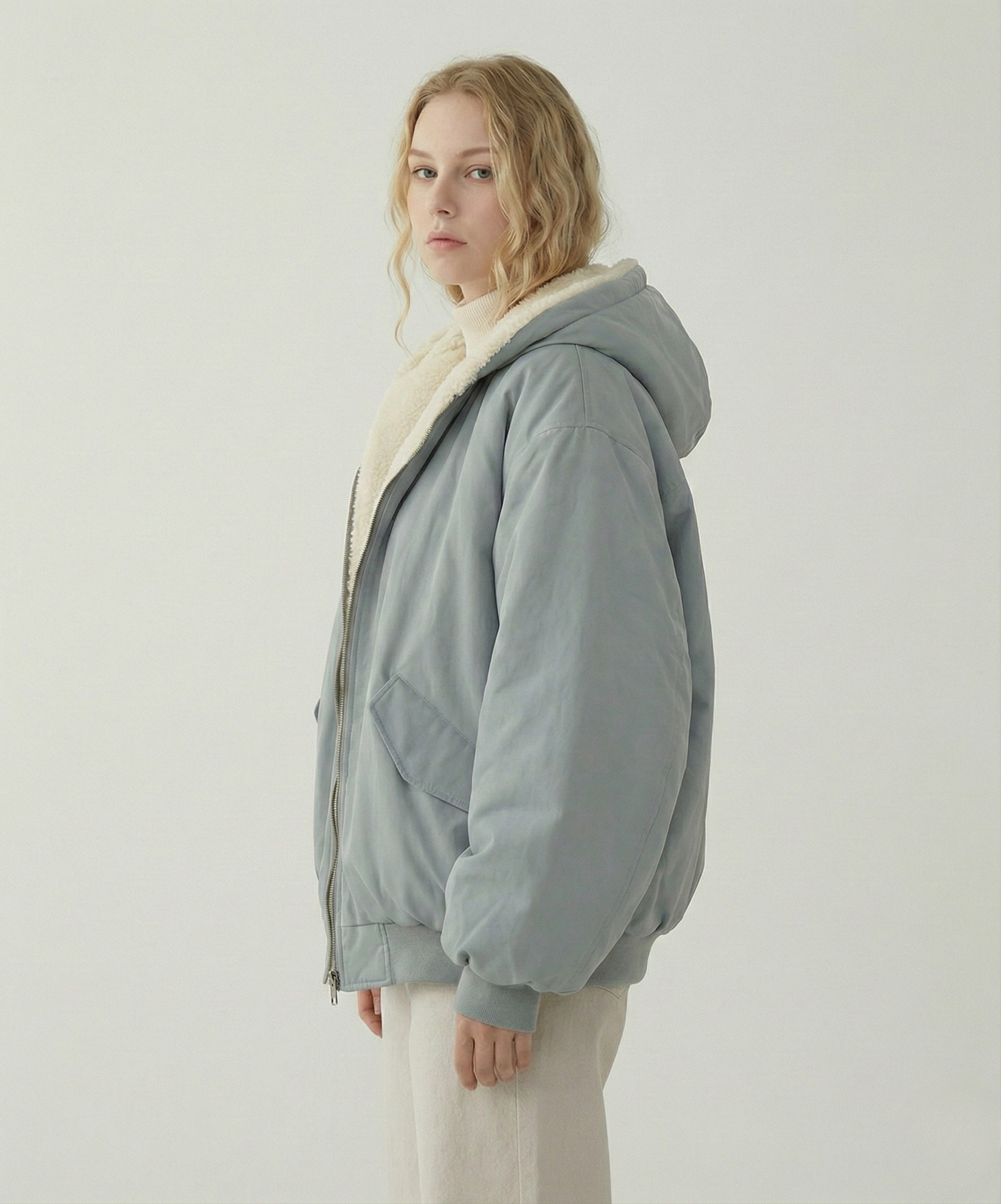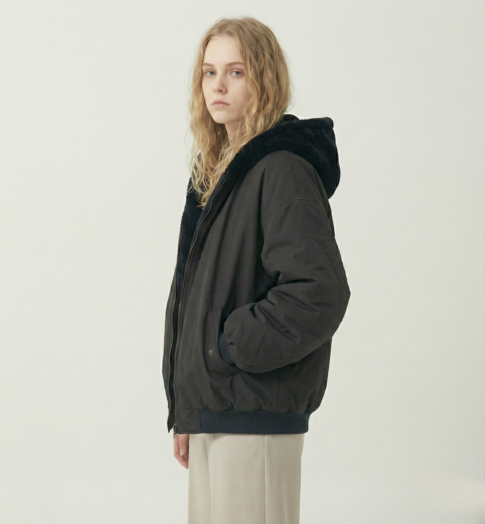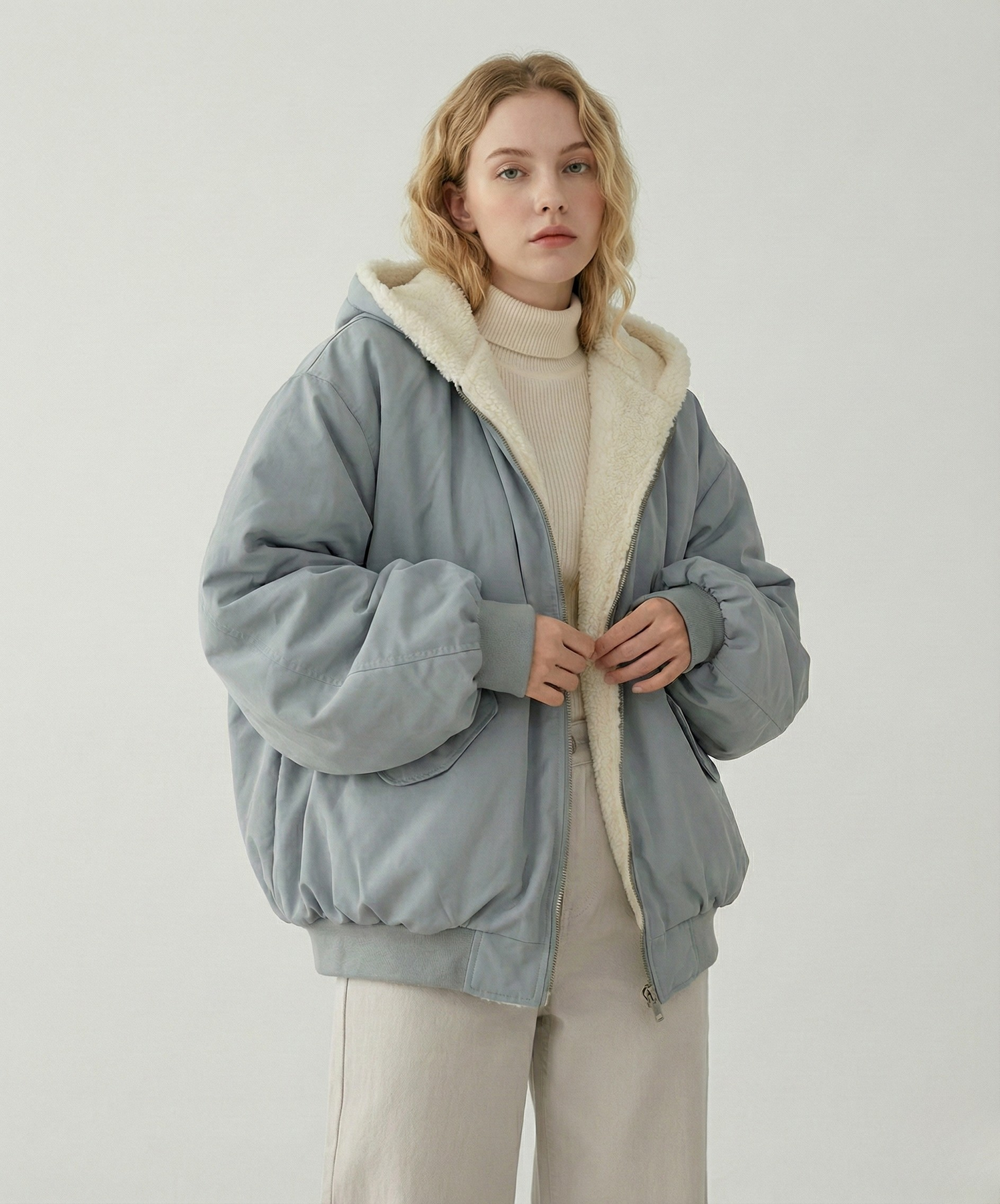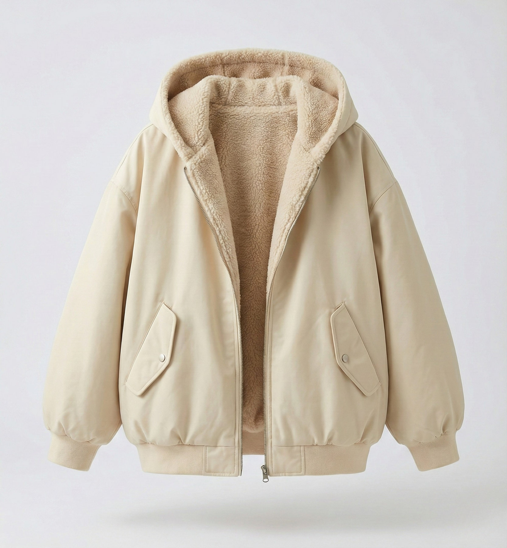 • Hem & Finish: Ribbed hem for warmth and a structured, solid-colored exterior.