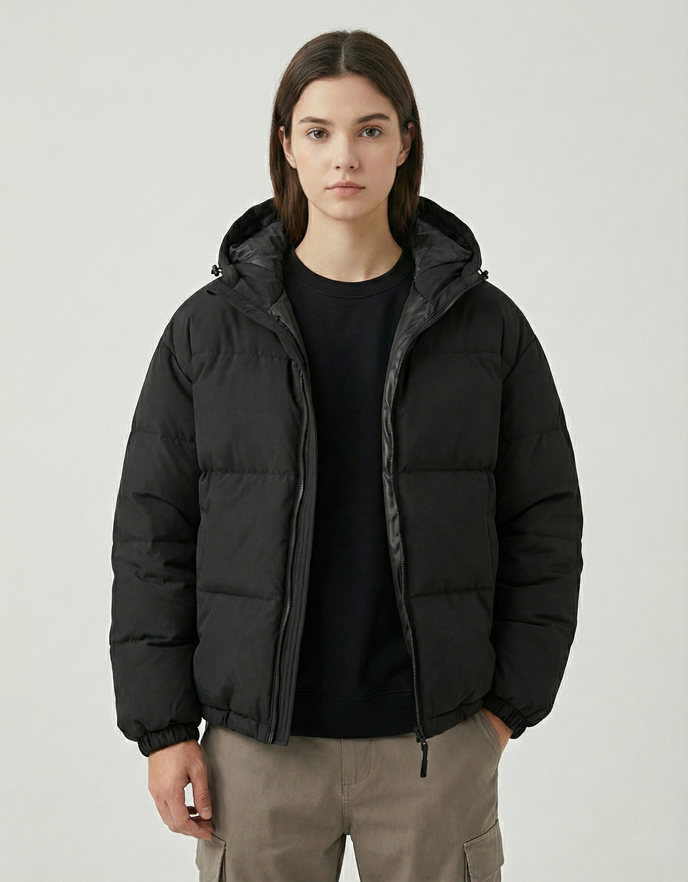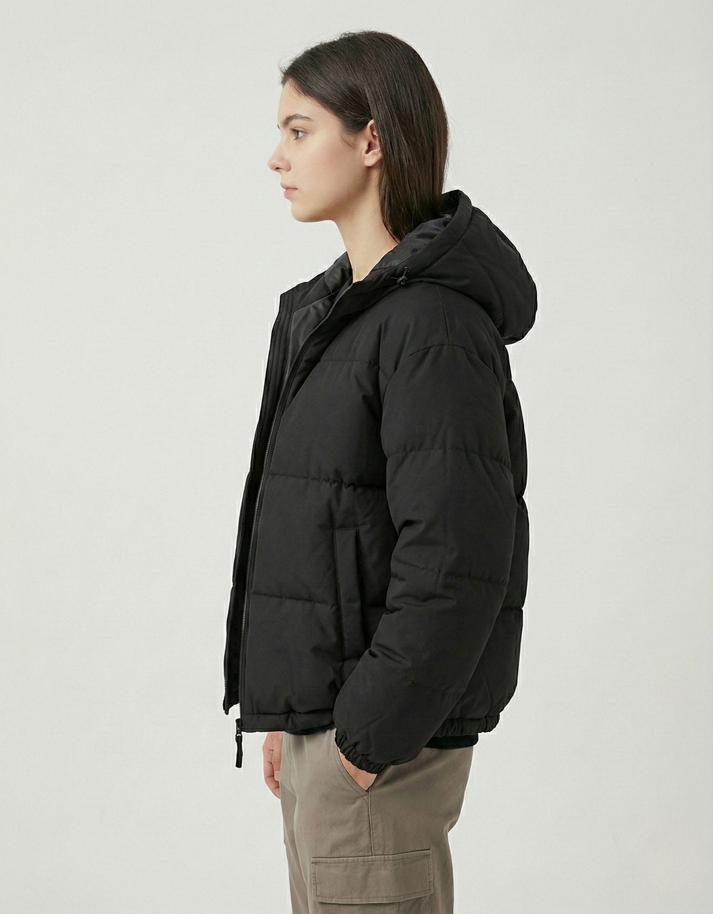• Hem: Straight hem with an internal drawstring and uniform quilted finish.