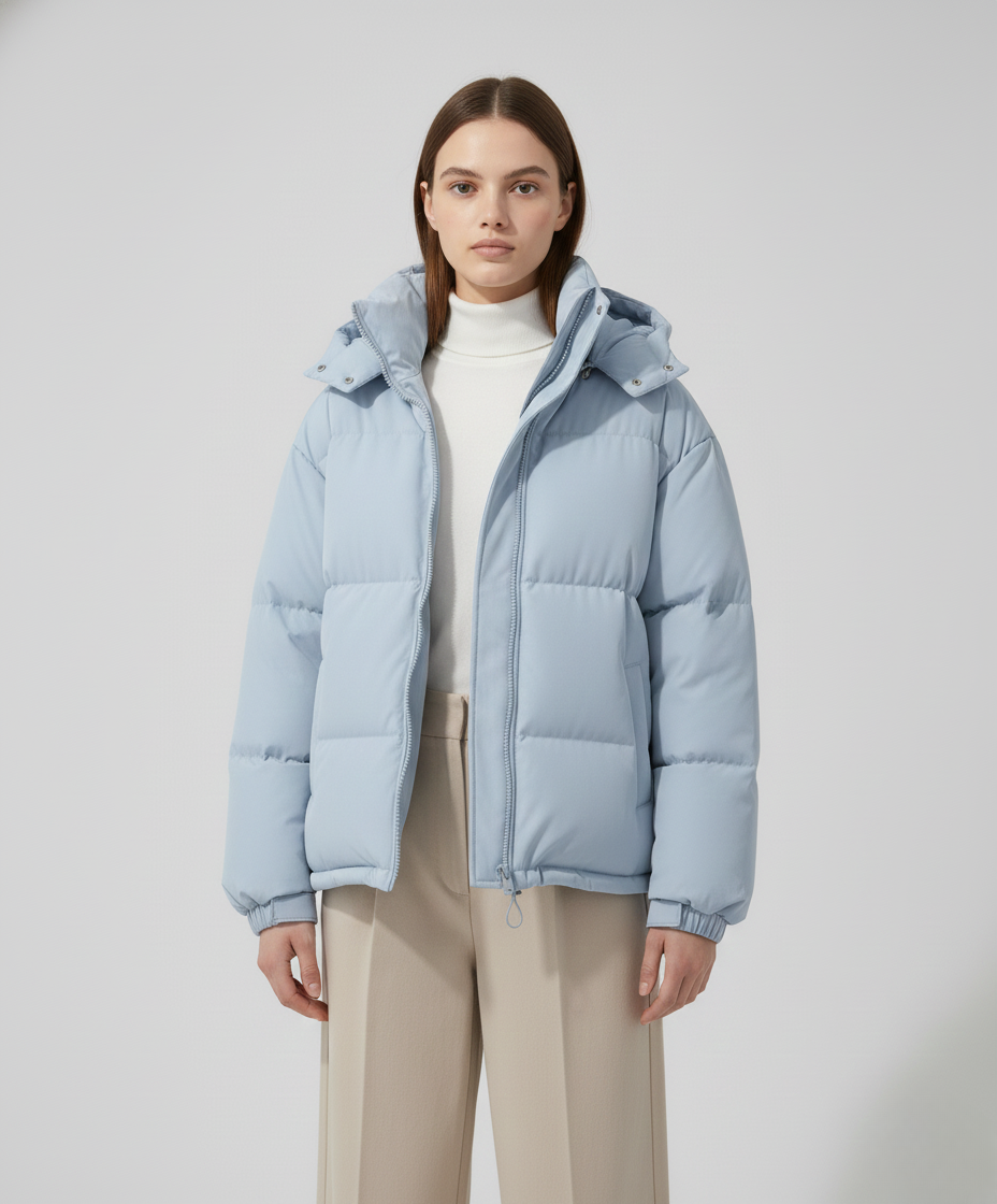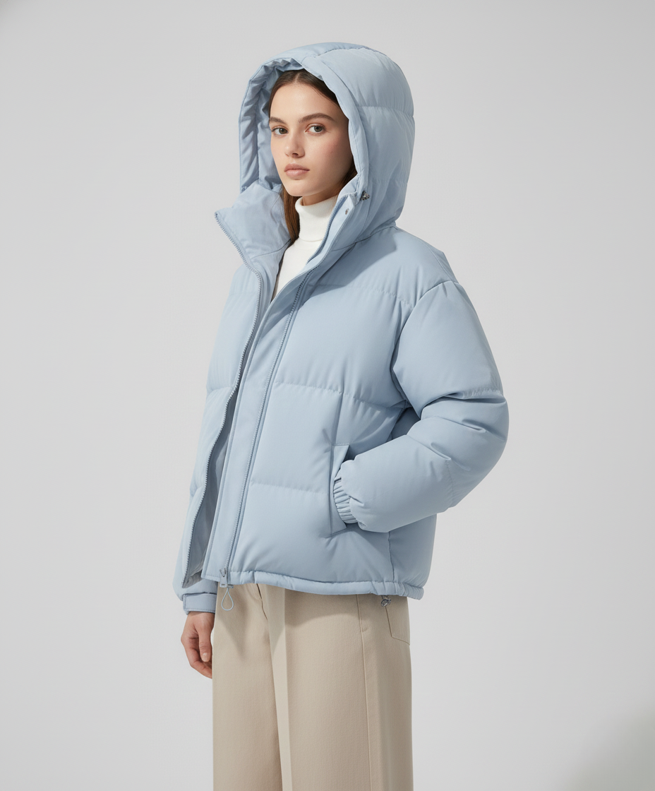 Women’s Jacket with Quilted Hood and Zip Fastening