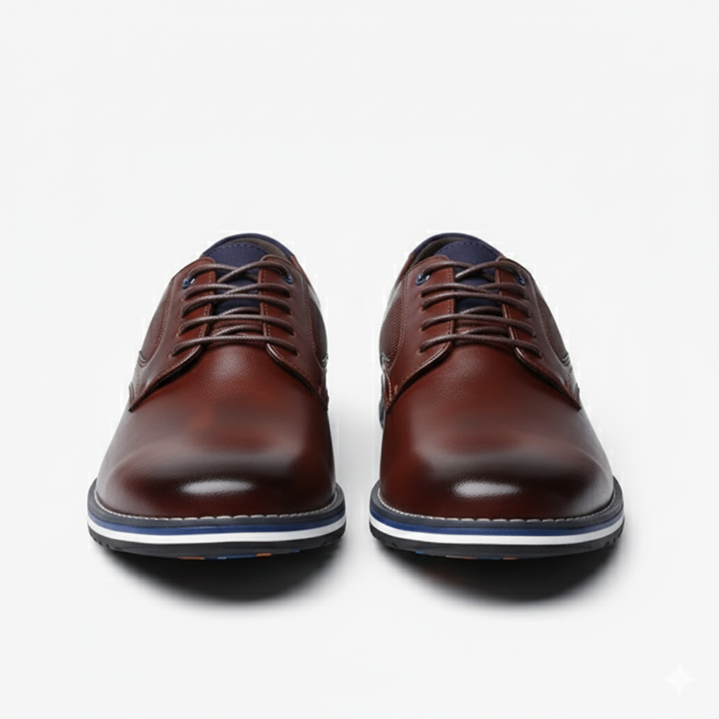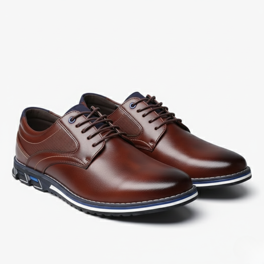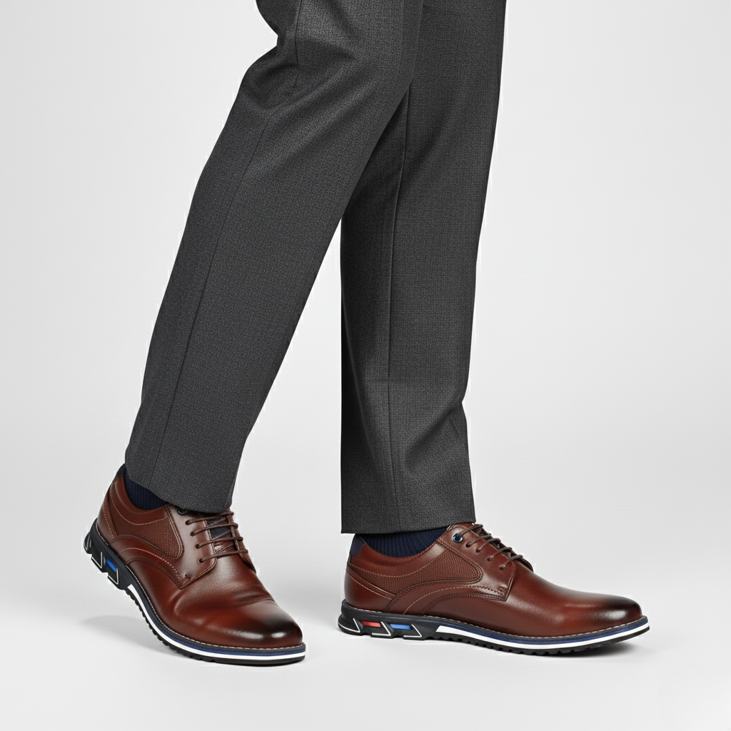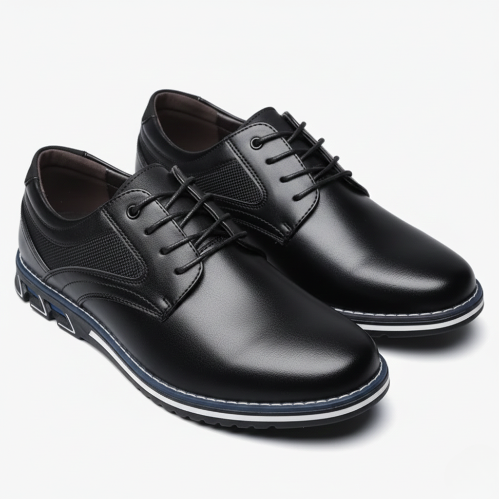 These men’s dress shoes feature a smooth, plain upper paired with classic lacing for a refined, timeless look. Contrasting edge stitching adds subtle detail, while the reinforced heel counter helps maintain shape during daily wear. A lined insole enhances comfort, and the textured outsole provides steady traction. The low-profile silhouette complements both formal and semi-formal outfits with ease.