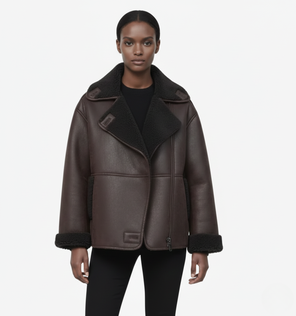Women's jacket with synthetic lining and notched collar