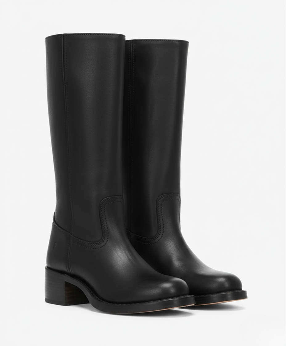 Women’s Knee-High Boots with Stacked Heel & Round Toe
