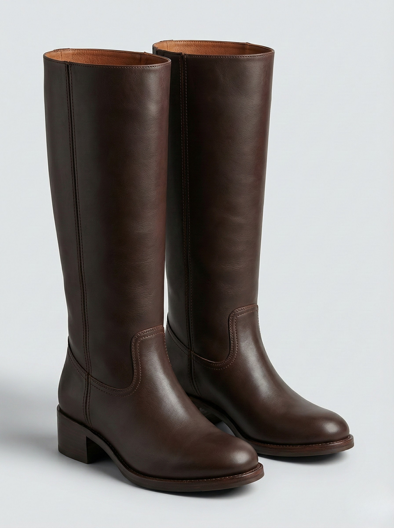 These women’s knee-high boots combine a smooth round toe, a stable stacked heel, and a mid-calf shaft for a clean, structured look. A convenient side zipper allows for easy on-and-off, while the lightly textured sole helps improve grip. Their versatile design pairs well with both casual and semi-formal outfits.