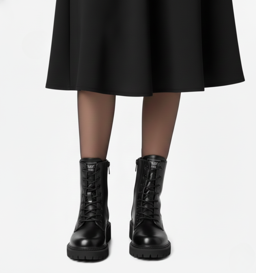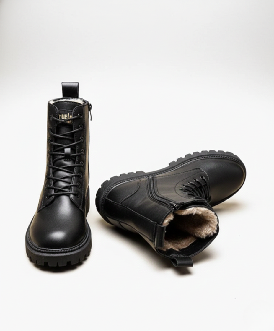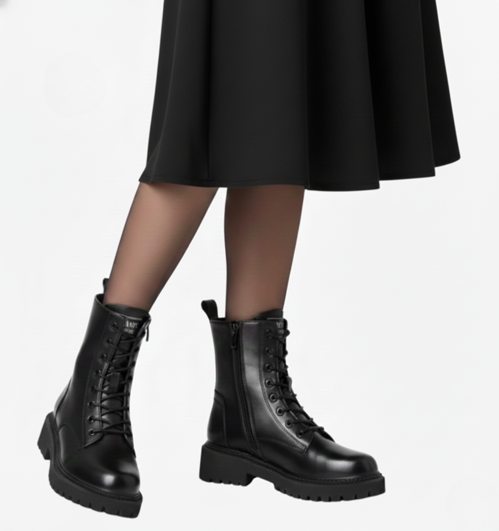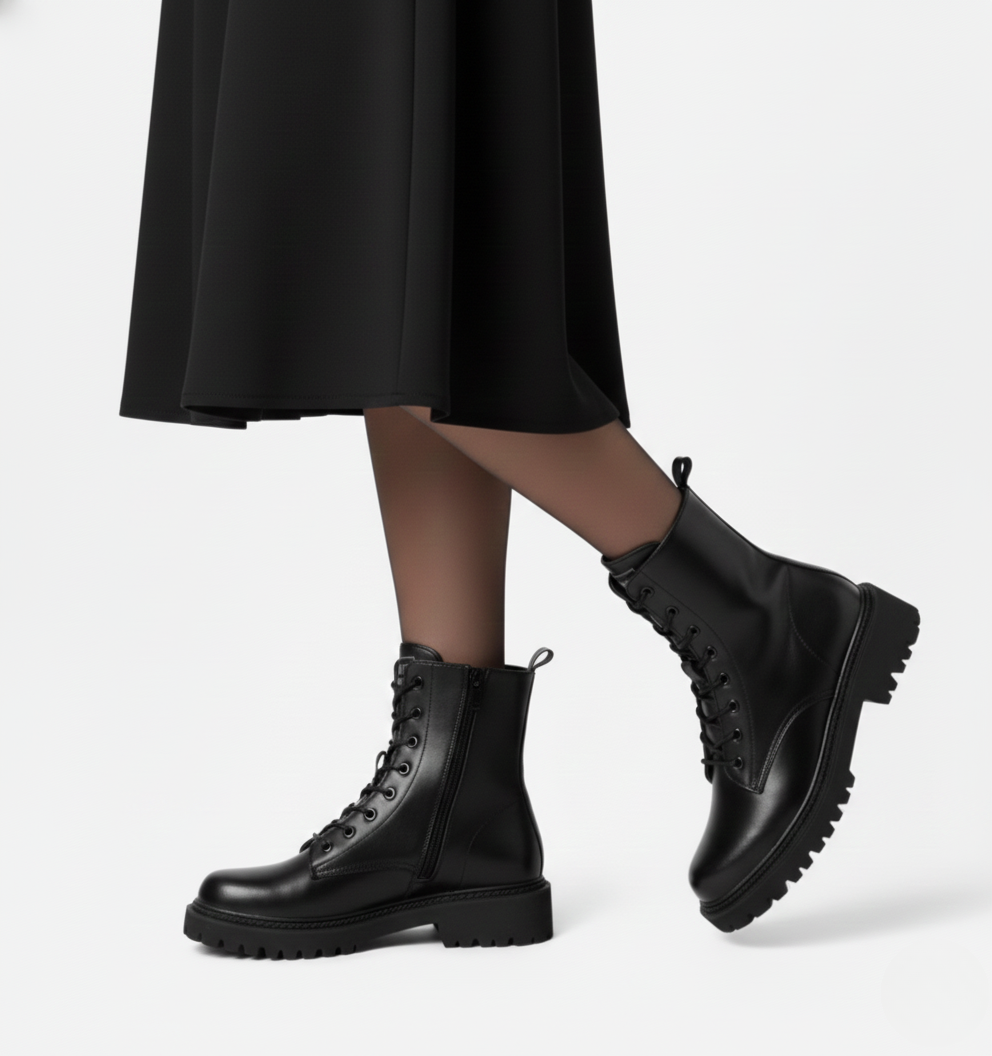 Women's lace-up boots with thick sole and side zipper